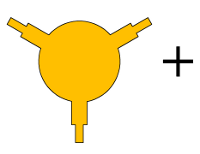 Такая топология микросхемы не позволяет создать сверхминиатюрное изделие на частотах меньших, чем 6 ГГц. Очевидно, что габаритные размеры вентиля или циркулятора будут зависеть от диаметра резонатора и от линейных размеров самой магнитной системы. Кроме того, требование электромагнитного согласования, накладывает определенные ограничения на величину диаметра магнита. Он должен быть не меньше диаметра резонатора, который наносится на ферритовую подложку. В результате многолетних поисков была разработана микросхема, которая дает возможность решить эту проблему (рис.2). Величина диаметра магнита у такого циркулятора не является критичным параметром, и может быть значительно меньше линейных размеров ферритового резонатора.